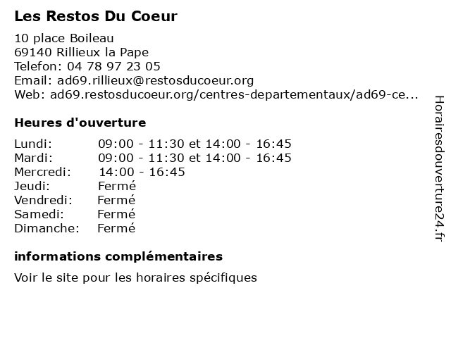 1 Les Restos Du Coeur (Distance: 4,62 km) 25 rue Hippolyte Kahn, 69100 Villeurbanne aides, alimentaire, coeur, du, les, restos, santé, solidarité, soutien 2 Les Restos Du Coeur (Distance: 5,26 km) 18 avenue Eugène Henaff, 69120 Vaulx en Velin aides, alimentaire, coeur, du, les, restos, santé, solidarité, soutien 3 Les Restos Du Coeur (Distance: 7,25 km) 4 Rue Curie, 69150 Décines-Charpieu aides, alimentaire, coeur, du, les, restos, santé, solidarité, soutien 4 Les Restos Du Coeur (Distance: 7,57 km) 11 avenue Gambetta, 69250 Neuville sur Saône aides, alimentaire, coeur, du, les, restos, santé, solidarité, soutien 5 Les Restos Du Coeur (Distance: 7,99 km) - Impasse du Lavoir, 01700 Miribel aides, alimentaire, coeur, du, les, restos, santé, solidarité, soutien 6 Les Restos Du Coeur (Distance: 9,23 km) 49 avenue Jean Jaurès, 69500 Bron aides, alimentaire, coeur, du, les, restos, santé, solidarité, soutien |