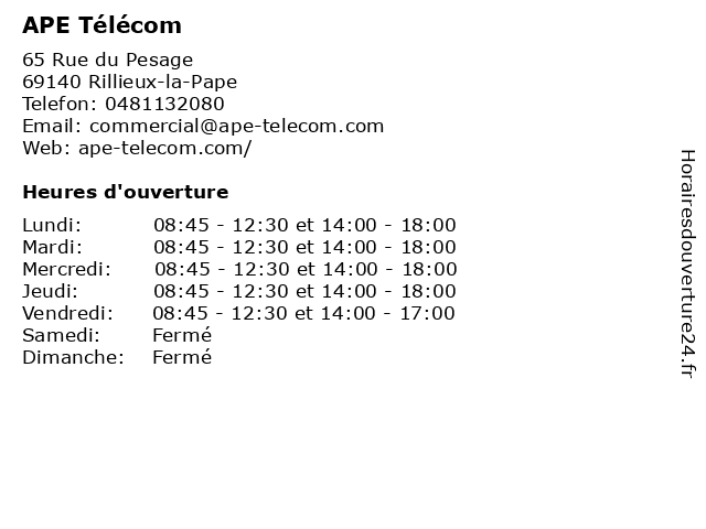 | Lundi | 08:45-12:30 et 14:00-18:00 |