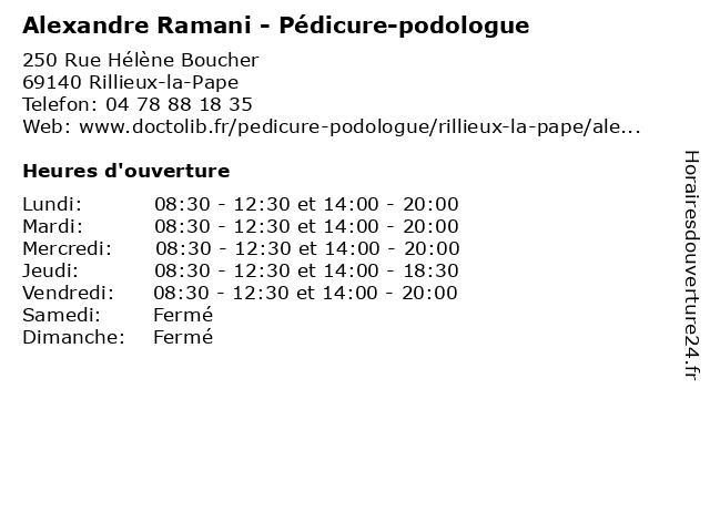 | Lundi | 08:30-12:30 et 14:00-20:00 |