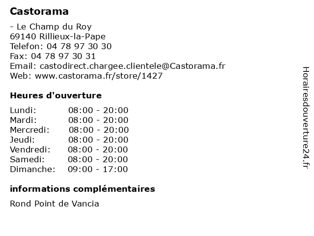 1 Castorama (Distance: 7,25 km) 2 Rue Jacquard, 69120 Vaulx En Velin atelier, castorama, decoration, ecorenovation, jardin 2 Castorama (Distance: 11,04 km) - Route du Paisy, 69570 Dardilly castorama, cuisine, décoration, jardin, matériel, outils, éclairage, électricité 3 Castorama (Distance: 11,42 km) - Aéroport de Lyon, 69675 Bron castorama, cuisine, décoration, jardin, matériel, outils, éclairage, électricité 4 YESSS Electrique Rillieux (Distance: 2,60 km) 5 Rue de l’Artifice, 69140 Rillieux-la-Pape appareillage, chauffage et climatisation, câbles, electrique, fils, gaines et conduits, installation, matériel électrique, outillage, rillieux, sécurité, yesss, éclairage 5 Cedeo (Distance: 2,65 km) 3 Rue de l'Artifice, 69140 Rillieux-la-Pape cedeo, chauffage, climatisation, outils, plomberie, sanitaire, électricité, équipements 6 Cedeo (Distance: 4,42 km) 37 Avenue du 8 Mai 1945, 69120 Vaulx-en-Velin cedeo, chauffage, climatisation, outils, plomberie, sanitaire, électricité, équipements |