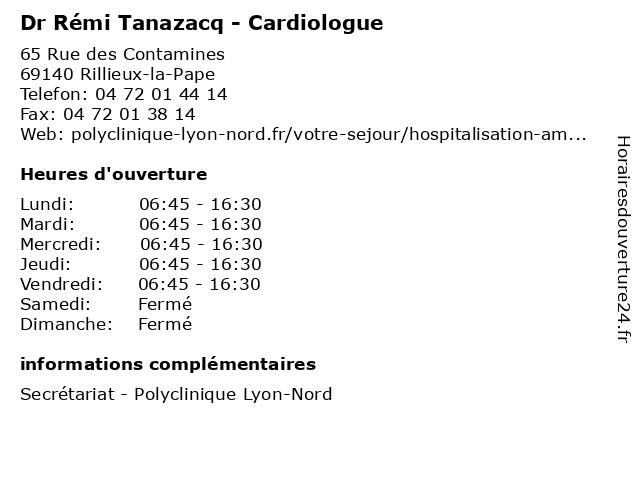1 Dr Jean-Noël Alligier - Cardiologue (Distance: 0,00 km) 65 Rue des Contamines, 69140 Rillieux-la-Pape alligier, cardiologue, consultation, docteur, dr, jean, med, médecin, médecine, noël, traitement 2 Dr Mickaël Attali - Cardiologue (Distance: 0,00 km) 65 Rue des Contamines, 69140 Rillieux-la-Pape attali, cardiologue, consultation, docteur, dr, med, mickaël, médecin, médecine, traitement 3 Dr Jamal Fadi - Cardiologue (Distance: 5,76 km) 93 Rue Louis Guérin, 69100 Villeurbanne cardiologue, consultation, docteur, dr, fadi, jamal, med, médecin, médecine, traitement 4 Dr Yves Mauvais - Cardiologue (Distance: 6,16 km) 103 Grande rue de la Croix Rousse, 69004 Lyon cardiologue, consultation, docteur, dr, mauvais, med, médecin, médecine, traitement, yves 5 Dr André Serusclat - Cardiologue (Distance: 7,97 km) 59 Boulevard Pinel, 69677 Bron andre, andré, cardiologue, consultation, docteur, dr, med, médecin, médecine, serusclat, traitement 6 Dr Pierre-Yves Leroux - Cardiologue (Distance: 9,29 km) 4 Avenue Simone Veil, 69150 Décines-Charpieu cardiologue, clinique, docteur, dr, generaliste, leroux, lyon, medecin, médipôle, pierre, privée, sante, villeurbanne, yves |