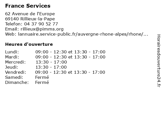 Lundi | 09:00-12:30 et 13:30-17:00 |