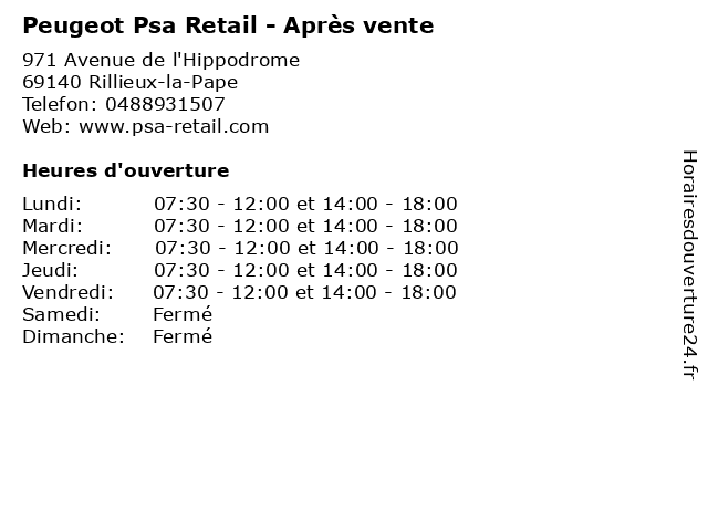 | Lundi | 07:30-12:00 et 14:00-18:00 |
