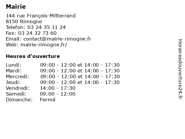 | Lundi | 09:00-12:00 et 14:00-17:30 |