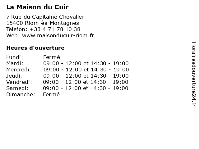 | Lundi | Fermé |