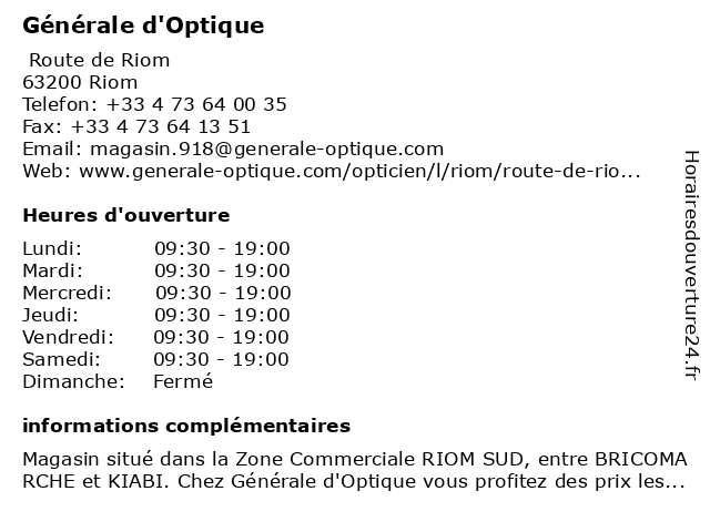 1 Opticien RIOM Générale d'Optique (Distance: 0,02 km) Route de Riom, 63200 Riom d'optique, examen de la vue, générale, lentilles de contact, lentilles progressives, lunette ray ban, lunettes, lunettes anti-lumière bleue, lunettes de conduite de nuit, lunettes de conduites de nuit, lunettes de soleil, lunettes de soleil pour enfant, lunettes de soleil pour femme, lunettes de soleil pour homme, lunettes de vue, lunettes de vue femme, lunettes de vue homme, lunettes progressives, opticien, opticien proche de chez moi, optique, riom, sport à la vue, vérification de la vue 2 CRP Mécanique Générale (Distance: 0,34 km) 2 Rue Pierre et Marie Curie, 63200 Riom crp, générale, mécanique 3 Cabinet Jean de Berry - Médecine générale Médecine du sport (secrétariat ) (Distance: 0,99 km) 24 Amiral Gourbeyre, 63200 Riom berry, cabinet, consultation, de, docteur, du, générale, jean, médecine, santé, secrétariat, sport 4 Société Générale (Distance: 1,55 km) 36 bis Boulevard desaix, 63200 Riom association d'épargne et de crédit, atm, conseil en crédit, générale, organisme d'assurance auto, organisme d'assurance moto, organisme d'assurance-habitation, organisme d'assurance-vie, société 5 Dr. Didier Jacquet - Médecine générale (Consultation sur rendez-vous) (Distance: 1,65 km) 1 rue du commerce, 63200 Riom consultation, didier, docteur, dr., générale, jacquet, médecine, rendez, santé, sur, vous 6 Cabinet médical du Docteur Accart - Médecine générale (secrétariat ) (Distance: 6,01 km) 2 Rue Alfred Punett, 63140 Châtel Guyon accart, cabinet, consultation, docteur, du, générale, médecine, médecins, médical, santé, secrétariat |