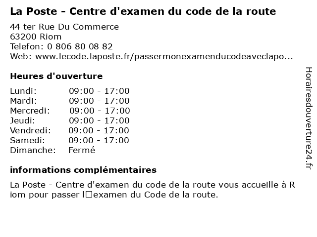 Termes de recherche pour La Poste - Centre d'examen du code de la route:poste, la, du, de, route, centre, code, d'examen, centre d'évaluation scolaire, école technique |