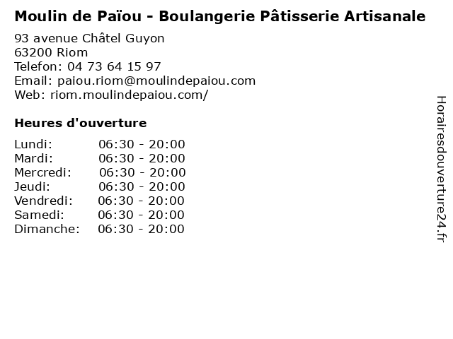 Termes de recherche pour Moulin de Païou - Boulangerie Pâtisserie Artisanale:de, riom, alimentation, moulin, commerce, boulangerie, pain, gateaux, pâtisserie, paiou, baguette, artisanale |