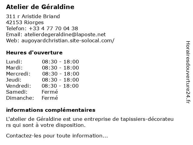 | Samedi | Fermé |
