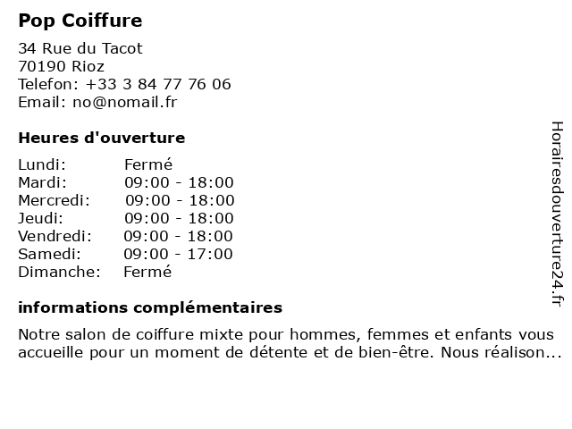 | Lundi | Fermé |