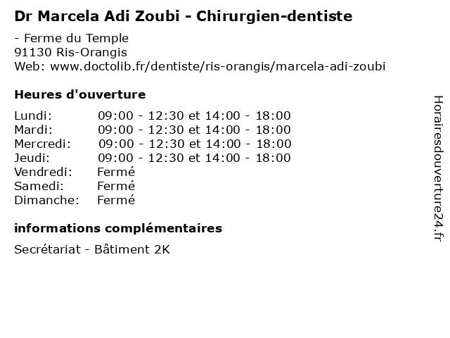 | Lundi | 09:00-12:30 et 14:00-18:00 |