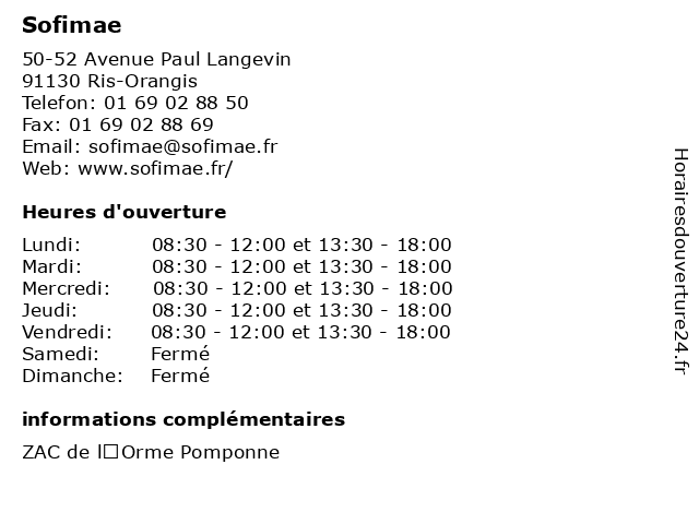 | Lundi | 08:30-12:00 et 13:30-18:00 |