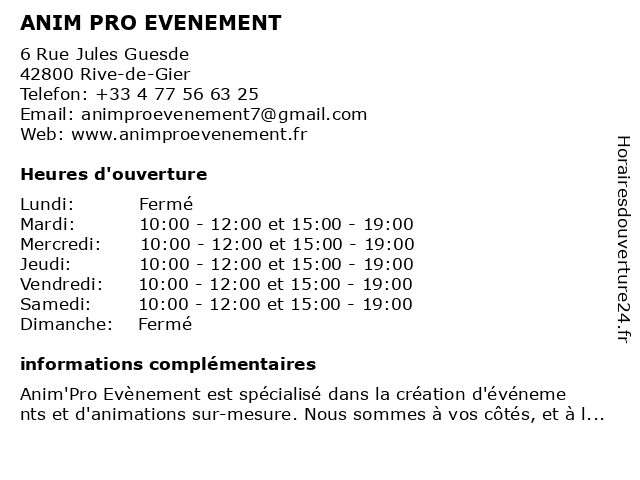 | Vendredi | 10:00-12:00 et 15:00-19:00 |