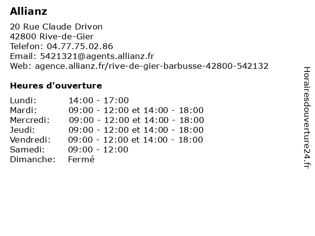 2 Allianz (Distance: 13,87 km) 2 rue roger salengro, 69700 Givors agence, allianz, assurances, emprunteur, habitation 3 Allianz (Distance: 14,05 km) 2 Avenue du Marechal Leclerc, 69702 Givors agence, allianz, assurances, emprunteur, habitation 4 Allianz (Distance: 14,11 km) 14 rue Victor Hugo, 69700 Givors agence, allianz, assurances, emprunteur, habitation 6 |