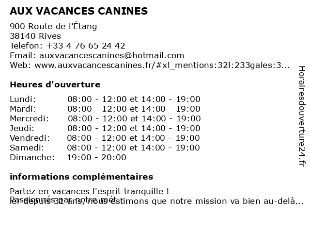 | Samedi | 08:00-12:00 et 14:00-19:00 |
