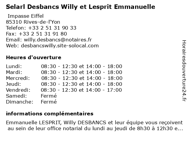 | Lundi | 08:30-12:30 et 14:00-18:00 |