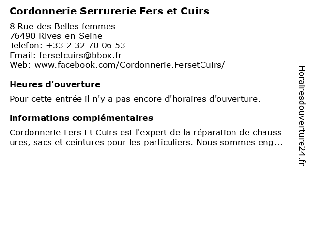 Appeler Cordonnerie Serrurerie Fers et Cuirs | |