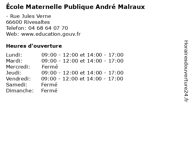 Lundi | 09:00-12:00 et 14:00-17:00 |