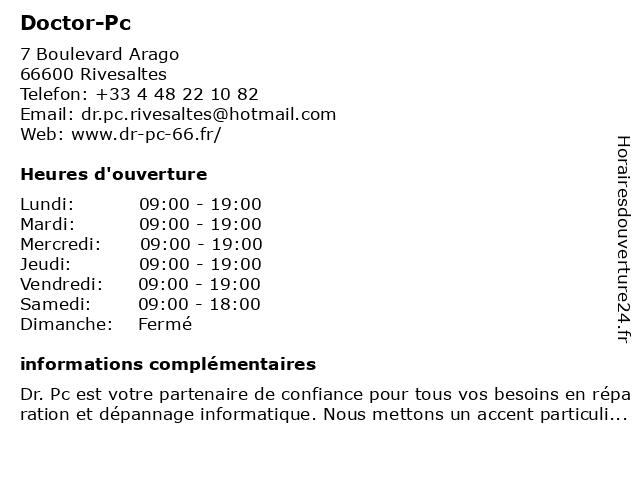 1 Dr. Pc Saint Esteve (Distance: 6,11 km) 12 Rue des Grillons, 66240 Saint-Estève dr., esteve, pc, saint 3 Micromania - Zing (Distance: 3,50 km) . Route departementale 83, 66531 Claira jeux, logiciel, micromania, pc, psp, zing 4 Help Mobile (Distance: 6,49 km) 324 Avenue du Maréchal Joffre, 66000 Perpignan help, mobile, pc, réparation, services, smartphones, tablet 5 LDLC Apple (Distance: 7,73 km) 9 boulevard Georges Clemenceau, 66000 Perpignan accessoire, apple, informatique, ldlc, logiciel, matériel, pc 6 Micromania - Zing (Distance: 9,91 km) . Avenue d'Espagne, 66000 Perpignan jeux, logiciel, micromania, pc, psp, zing |