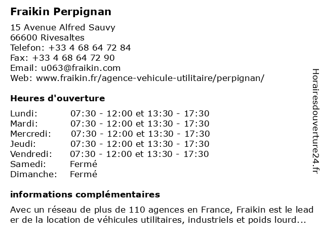 | Lundi | 07:30-12:00 et 13:30-17:30 |