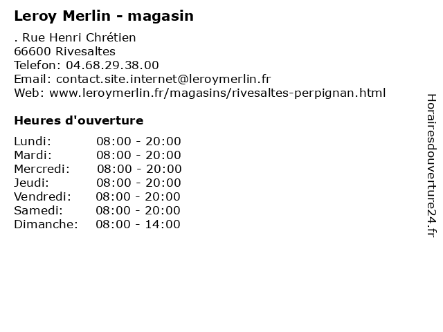 1 Leroy Merlin - magasin (Distance: 11,50 km) . Route d'Espagne, 66000 Perpignan bain, bois, bricolage, leroy, magasin, merlin, meuble, outillage 2 Leroy Merlin - cour des matériaux (Distance: 0,00 km) . Rue Henri Chrétien, 66600 Rivesaltes cour, cuisine, decoration, des, leroy, matériaux, merlin, parquet, terrase jardin 3 Electro Dépôt - Magasin (Distance: 0,15 km) - Rue Henri Chrétien, 66600 Rivesaltes depot, dépôt, electro, gros ménage, lave-linge, lave-vaisselle, machines à café à bas prix, magasin, rasoirs, réfrigérateur. petit côté électrique, sèche-cheveux 4 Cash Converters (Horaires du magasin) (Distance: 0,22 km) 17 Rue Marc Allégret, 66600 Rivesaltes cash, converters, du, horaires, magasin, multimédia, électroménagerm 5 Ford - Magasin ( Horaires Service Commercial ) (Distance: 3,30 km) n/a Route de Narbonne, 66000 Perpignan atelier de carrosserie, auto, car, commercial, financement, ford, ford entreprise, horaires, magasin, pièces et accessoires, service, véhicules d’occasion, véhicules neufs 6 Ford - Magasin (Horaires Service Après-vente) (Distance: 3,30 km) n/a Route de Narbonne, 66000 Perpignan après, atelier de carrosserie, auto, car, financement, ford, ford entreprise, horaires, magasin, pièces et accessoires, service, vente, véhicules d’occasion, véhicules neufs |