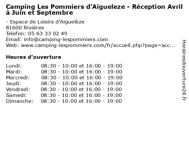 Termes de recherche pour Camping Les Pommiers d'Aigueleze - Réception Avril à Juin et Septembre:en, et, les, camping, loisirs, vacances, tourisme, mai, réception, septembre, avril, juin, pommiers, d'aigueleze |