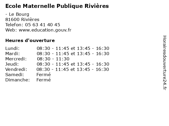 | Mardi | 08:30-11:45 et 13:45-16:30 |