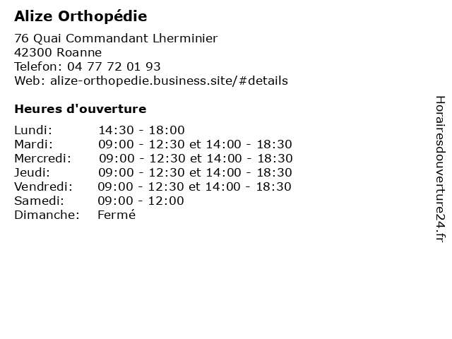 | Vendredi | 09:00-12:30 et 14:00-18:30 |