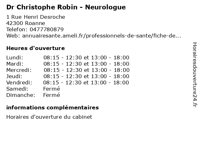 | Lundi | 08:15-12:30 et 13:00-18:00 |
