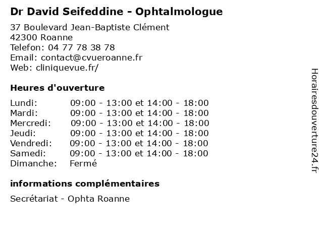 | Lundi | 09:00-13:00 et 14:00-18:00 |