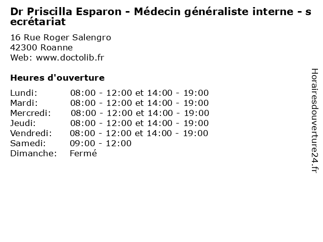 | Lundi | 08:00-12:00 et 14:00-19:00 |