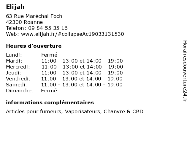 Jeudi | 11:00-13:00 et 14:00-19:00 |