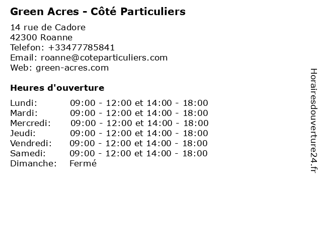 | Lundi | 09:00-12:00 et 14:00-18:00 |