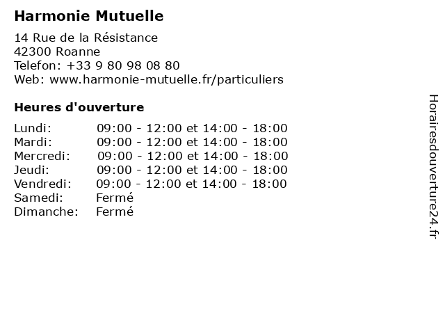 2 Eovi Mcd Mutuelle (Distance: 0,80 km) 19 rue Benoît Malon, 42335 Roanne assurances, eovi, mcd, mutuelle, mutuelle santé, services 3 Harmonie Médical Service (Distance: 2,01 km) 1 Avenue de la République, 42120 Le Coteau harmonie, médical, service 4 Harmonie (Distance: 10,96 km) 87 Rue du Commerce, 42370 Renaison accessoires, boutique, habillement, harmonie, mode 6 |