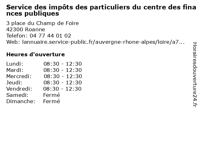 1 Centre Des Impôts Foncier (Distance: 0,02 km) 3 Place du Champ de Foire, 42328 Roanne administration, assoc, centre, des, foncier, impôts, services, services publics 2 Green Acres - Côté Particuliers (Distance: 0,76 km) 14 rue de Cadore, 42300 Roanne acres, agency, apartment, côté, green, particuliers, real estate 3 Trésorerie de Marcigny (Distance: 25,60 km) - Rue de la Chenale, 71110 Marcigny administration, de, finances, impôts, marcigny, public, publiques, trésor, trésorerie 4 Trésorerie de Chauffailles (Distance: 27,02 km) 6 Rue Gambetta, 71170 Chauffailles administration, chauffailles, de, finances, impôts, public, publiques, trésor, trésorerie 5 Trésorerie de la Clayette (Distance: 32,49 km) - Place de la Mairie, 71800 La Clayette administration, clayette, de, finances, impôts, la, public, publiques, trésor, trésorerie 6 Trésorerie de Boën-sur-Lignon (Distance: 33,92 km) 14 Rue de Lyon, 42130 Boën-sur-Lignon administration, boën, de, finances, impôts, lignon, public, publiques, sur, trésor, trésorerie |