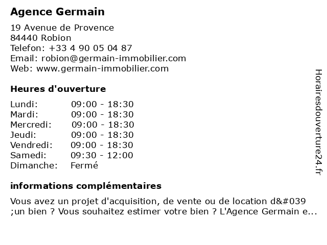 1 Société Agence Germain (Distance: 9,09 km) 21 Quai Rouget de l'Isle, 84800 L'Isle-sur-la-Sorgue agence, germain, société 2 Garage Germain Ford SAS (Distance: 22,89 km) 336 Avenue Victor Hugo, 84400 Apt ford, garage, germain, sas 4 Germain-Massol Florence (Distance: 30,40 km) 54 Avenue Charles de Gaulle, 13140 Miramas florence, germain, massol 5 Dr Michel-Marie Germain - Médecin généraliste (Distance: 30,97 km) 5 Rue Barbier Jauffret, 13140 Istres consultation, docteur, dr, germain, généraliste, marie, med, michel, médecin, traitement 6 Mathilde Germain - Masseur-kinésithérapeute (Distance: 37,10 km) 434 Chemin de Saint-Martin, 84120 Pertuis docteur, germain, kine, kinesitherapeute, kinésithérapeute, masseur, mathilde |