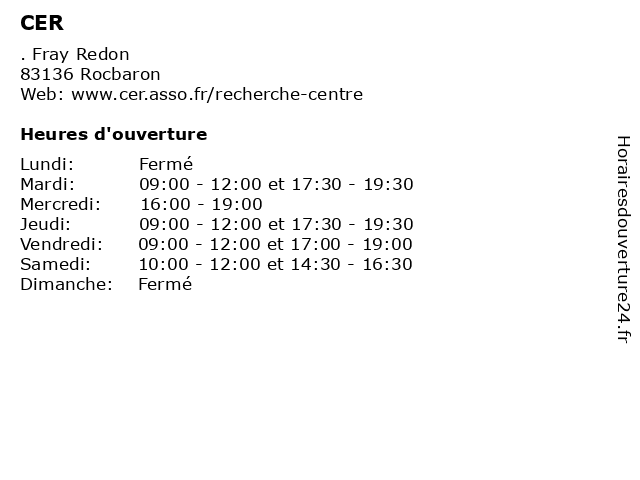 | Mardi | 09:00-12:00 et 17:30-19:30 |