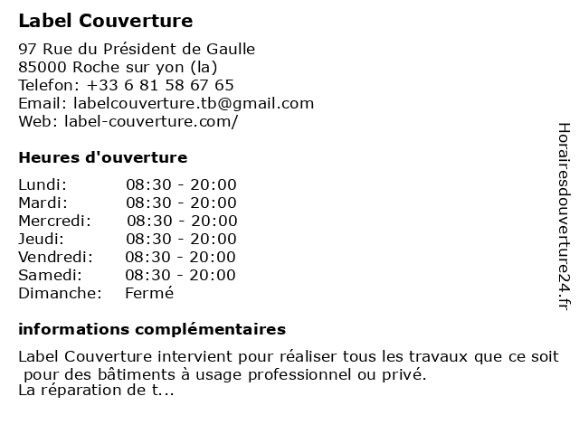 | Samedi | 08:30-20:00 |