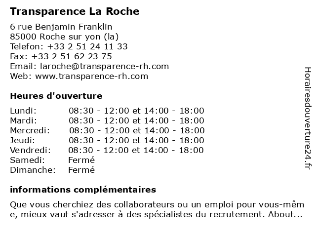 | Lundi | 08:30-12:00 et 14:00-18:00 |
