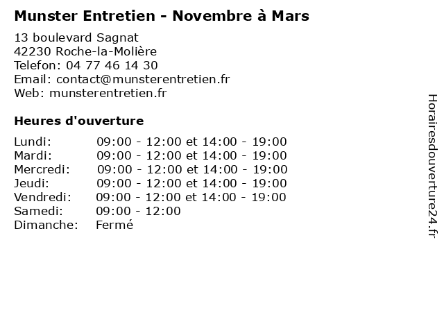 | Lundi | 09:00-12:00 et 14:00-19:00 |