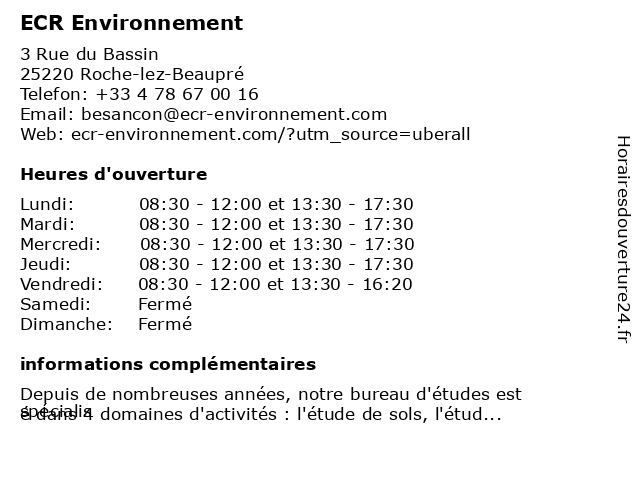 | Lundi | 08:30-12:00 et 13:30-17:30 |