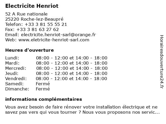 3 SOCIETE BERNARD ELECTRICITE (Distance: 5,45 km) 60 Chemin De Vieilley, 25000 Besançon bernard, electricite, societe 4 Laurence Henriot - Sage-femme (Distance: 7,79 km) 2 place Saint-Jacques, 25000 Besançon consultation, docteur, femme, henriot, laurence, med, medecine, medical, médecin, sage, traitement 6 Henriot Electricité (Distance: 9,57 km) 41 Grande rue, 25640 Pouligney lusans electricité, henriot, pouligney lusans |