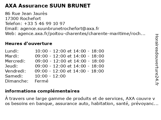1 AXA Assurance et Banque Chabot Metayer Et Potier (Distance: 0,32 km) 52 Avenue la Fayette, 17300 Rochefort assurance, assurance appartement, assurance auto, assurance entreprise, assurance epargne, assurance habitation, assurance maison, assurance professionnelle, assurance santé, assurance voiture, axa, banque, chabot, et, metayer, potier 2 GMF Assurance (Distance: 0,48 km) 73 Avenue Charles de Gaulle, 17300 Rochefort agence, agent, assurance, auto, gmf, habitation, prévoyance, santé 3 AXA Assurance et Banque Suun Brunet (Distance: 0,79 km) 36B Rue du Docteur Peltier, 17300 Rochefort assurance, assurance appartement, assurance auto, assurance entreprise, assurance epargne, assurance habitation, assurance maison, assurance professionnelle, assurance santé, assurance voiture, axa, banque, brunet, et, suun 4 Caisse Primaire D'Assurance Maladie (Distance: 0,88 km) 5 Avenue Maurice-Chupin, 17300 Rochefort administration, assoc, caisse, d'assurance, maladie, primaire, services, services publics 5 Sagesse Assurance - OCA Assurances (Distance: 3,35 km) 24 rue des Javelles, 17620 Echillais agence, assurance, assurances, courtages, experts, oca, sagesse, services 6 VEDEAU ROMAIN-AGENT AXA (Distance: 3,54 km) 94 Avenue d'Aunis, 17430 Tonnay-Charente agent, axa, romain, vedeau |