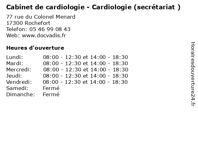 | Lundi | 08:00-12:30 et 14:00-18:30 |