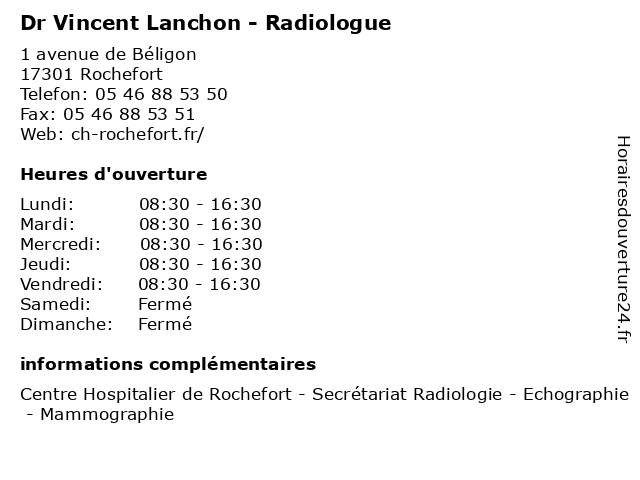 | Lundi | 08:30-16:30 |