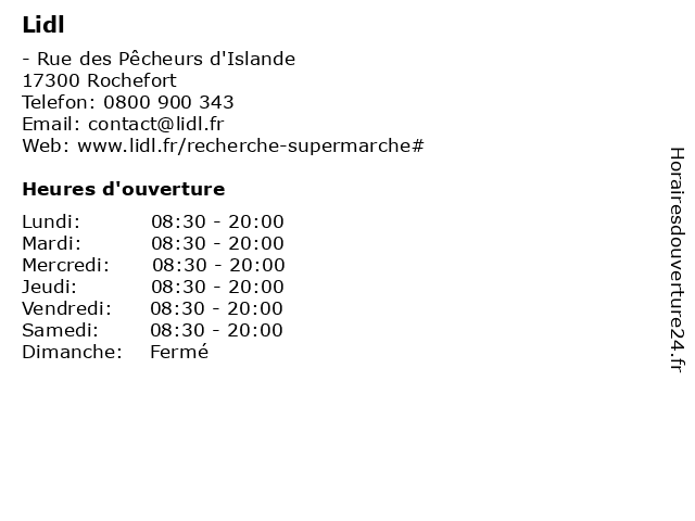 | Lundi | 08:30-20:00 |