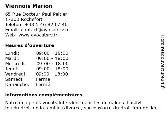 1 Cabinet d'Avocats Rougier Viennois Fernandes SCP (Distance: 1,31 km) 37 Avenue Docteur Rene Dieras, 17300 Rochefort cabinet, d'avocats, fernandes, rougier, scp, viennois 2 Marion Jaouen - Ostéopathe (Distance: 1,48 km) 37 Boulevard Aristide Briand, 17300 Rochefort jaouen, marion, ostéo, ostéopathe, ostéopathes, soins 3 Marion Baril - Ostéopathe (Distance: 18,75 km) 29 Rue Pierre Wiehn, 17480 Le Château-d'Oléron baril, marion, ostéo, ostéopathe, ostéopathes, soins 4 Marion Caille Boulen - Psychologue (Distance: 21,89 km) 1 Rue de la Mairie, 17220 La Jarrie boulen, caille, folie, marion, psychiatre, psychiatrie, psychiatrique, psychologue 5 Dr Marion Troly - Médecin généraliste (Distance: 28,51 km) 1 rue du Docteur Schweitzer, 17019 La Rochelle consultation, docteur, dr, généraliste, marion, med, médecin, médecine, traitement, troly 6 Dr Marion Charenton-Blavignac - Médecin généraliste (Distance: 28,51 km) 1 rue du Docteur Schweitzer, 17019 La Rochelle blavignac, charenton, consultation, docteur, dr, généraliste, marion, med, médecin, médecine, traitement |