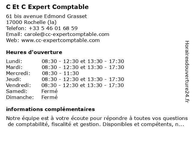 | Lundi | 08:30-12:30 et 13:30-17:30 |