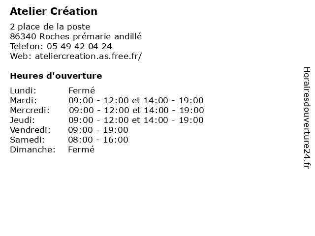 | Mardi | 09:00-12:00 et 14:00-19:00 |