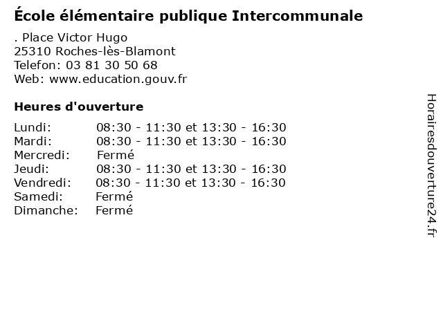1 École maternelle publique Intercommunale (Distance: 0,00 km) . Place Victor Hugo, 25310 Roches-lès-Blamont ecole, education, intercommunale, maternelle, publique, services, école 2 École Primaire Publique Intercommunale (Distance: 3,03 km) 18 rue Jean Perrin, 25310 Glay cours, education, intercommunale, primaire, publique, services, École, école 3 École maternelle publique intercommunale (Distance: 3,75 km) 5 Place du Temple, 25310 Pierrefontaine-lès-Blamont ecole, education, intercommunale, maternelle, publique, services, école 4 École primaire publique intercommunale (Distance: 4,16 km) 6 Rue de l'Église, 25310 Villars-lès-Blamont ecole, education, intercommunale, maternelle, primaire, publique, services, école 5 École élémentaire publique Petit Chenois (Distance: 11,17 km) 27 Rue du Petit Chenois, 25200 Montbéliard chenois, ecole, education, petit, publique, services, école, élémentaire 6 École Primaire Publique Intercommunale (Distance: 11,28 km) 12 Rue des Écoles, 25420 Dampierre-sur-le-Doubs cours, education, intercommunale, primaire, publique, services, École, école |
